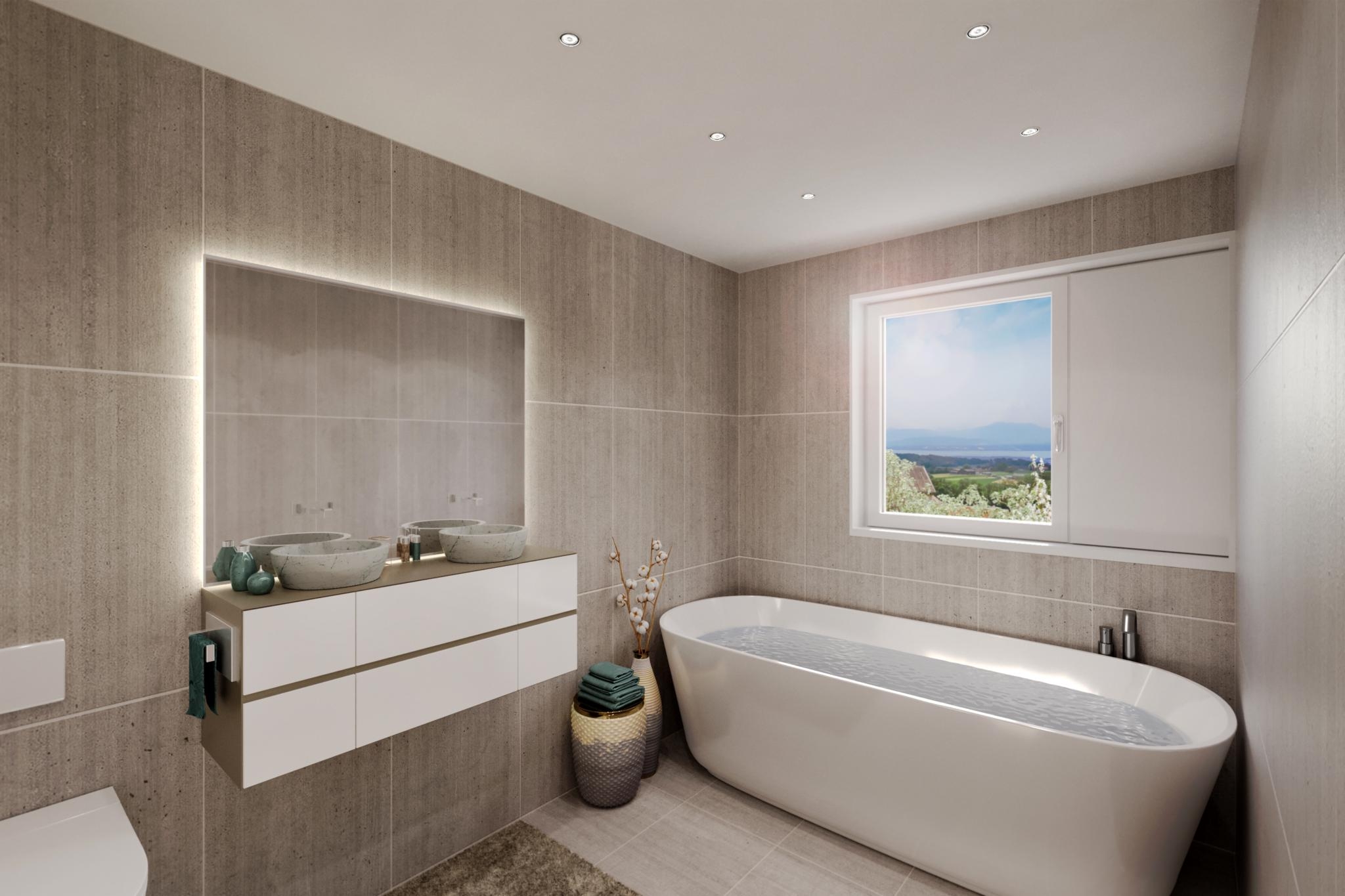 Sur une parcelle de 1'106 m², elles seront composées d’un grand et lumineux séjour, d’une cuisine ouverte avec un coin repas, d’un W.C. Visiteurs, d’un bureau, de trois chambres et de deux salles de bains.